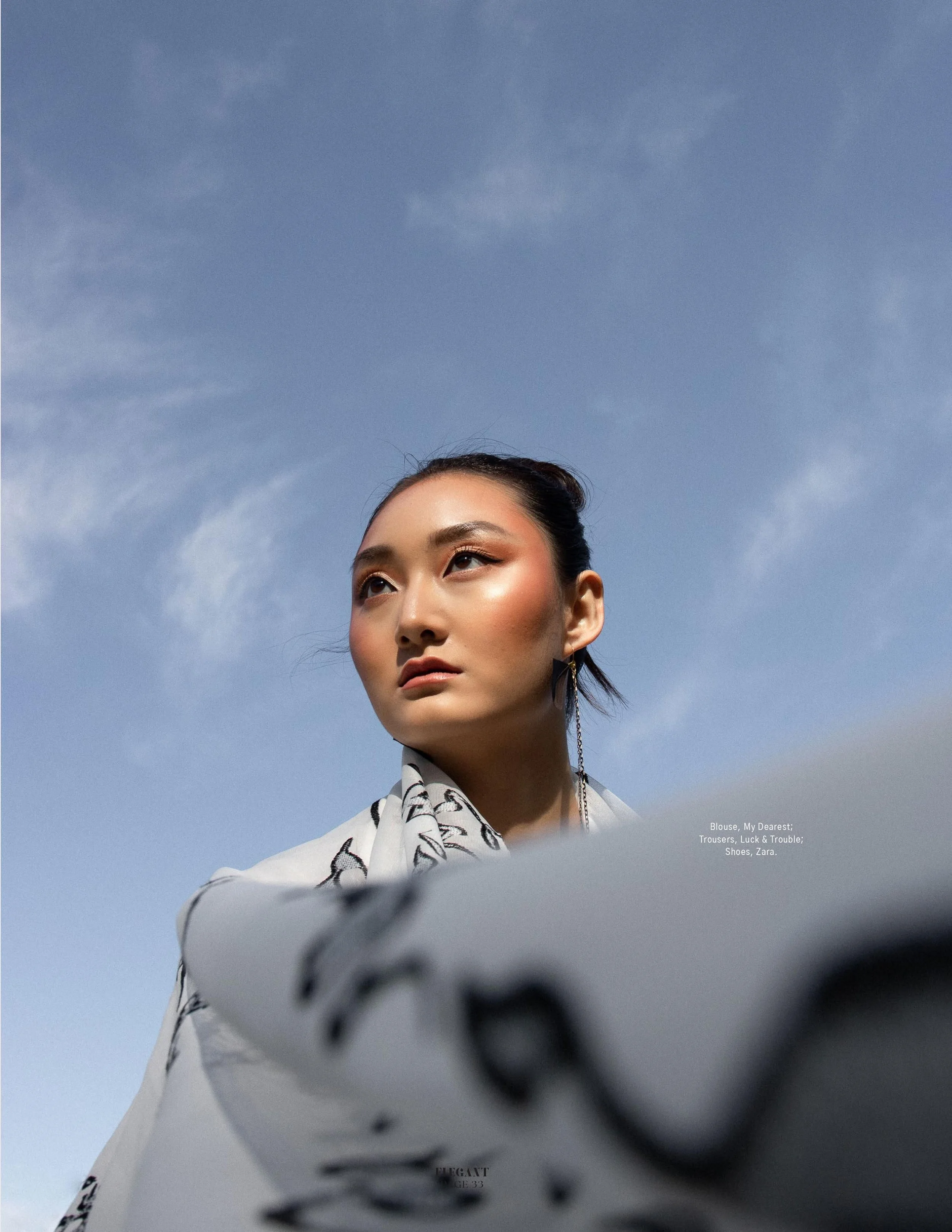 Hazel Xue photographed by Eliza Mullins. Makeup by Marie Le.